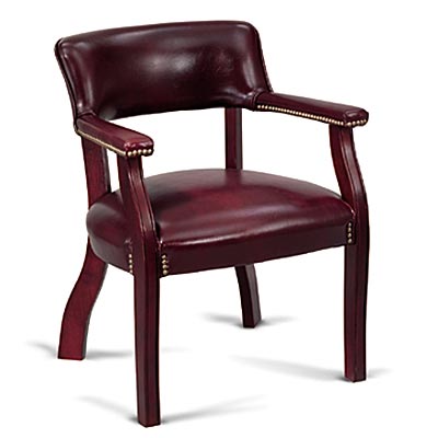 Traditional styling with button tufting and brass nailhead trim. Padded arms. Deep cushioned vinyl upholstery in Oxblood burgundy. Genuine hardwood frame with a rich mahogany finish. Tradional "bankers" guest/conference chair. Straight wood legs. Seat: 23w x 21d. Back: 21w x 9h. Overall height: 30". NO ASSEMBLY REQUIRED. Meets or exceeds ANSI/BIFMA standards. Manufacturer’s five-year limited warranty. Shpg. wt. 27 lbs. (Cannot ship UPS.) |