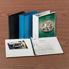 BNDR,VIEW,11X8.5,1.5",BK -  Create and customize binders as you see fit Outside see-through plastic overlay for insertion, plus pockets inside Clear matte finish overlay. 3-1/2" deep inside pockets. Concealed, heavy-duty rivets fasten metal ring mechanism to binder's spine.