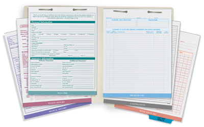 Complete Medical Form System W/Folder This preassembled chart contains the most popular medical forms which are designed to keep information accurate and consistent for each patient. (Each form is also sold separately.) Each preassembled chart includes: 11 pt reinforced tab file folder. Heat bonded fastener in positions #1 & #3. Fileback with Lab/Test Results tab. Six color-coded medical forms, printed head to toe. Complete charts 25 per box.