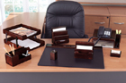 Solid wood pieces designed with soft curves. Create a sleek, Euro look of elegance on any desktop. Nonskid pads protect furniture. More than twice the capacity of most pencil holders. Extra-large capacity accommodates scissors, rulers and many writing utensils.
