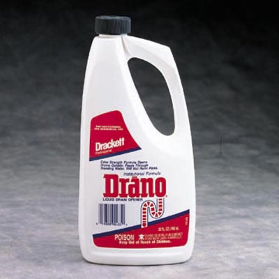 JOHNSON DIVERSEY : Drano® Liquid Drain Opener - Extra strength institutional formula. Dissolves clogs quickly and effectively, even in gooseneck or lateral pipes. Can be used in standing water. Acid-freesafe for pipes and septic tanks. Safety cap.