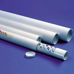 White Kraft Mailing Tubes w/Recessed End Plugs, Inside: 36" x 3" Dia., 25/Ctn