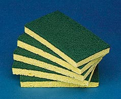 Absorbent yellow cellulose on one side, green scouring pad on the other side. 3-3/8 x 6-1/4. 5 sponges per pack. [8 Packs per carton.]