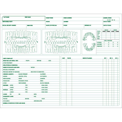 Keep accurate records of patient care and treatment. Overall size 8” W x 10” H, folds to 8” W x 5” H.